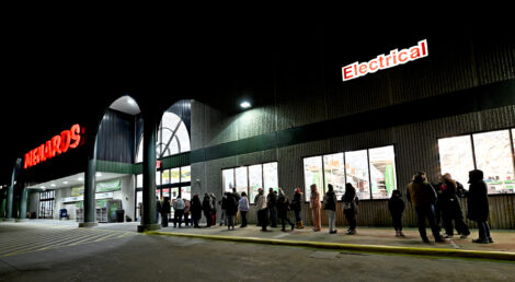 Eager shoppers line up outside the Fort Dodge Menards waiting for the store to open for Black Friday.