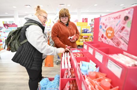 Pictured from left: Alison O’Brion, Darci Dooley and Ella Mundie, all of Fort Dodge, look through beauty products at Ulta Beauty on Black Friday in Fort Dodge.