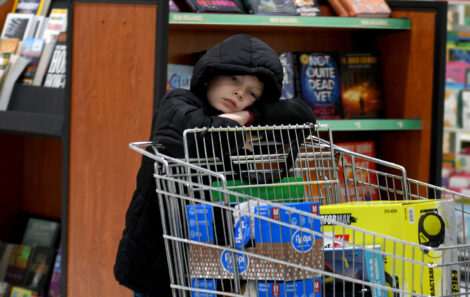 Hunter Stein, 7, of Fort Dodge, pushes a basket through the aisle of Menards during Black Friday in Fort Dodge.