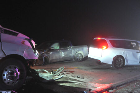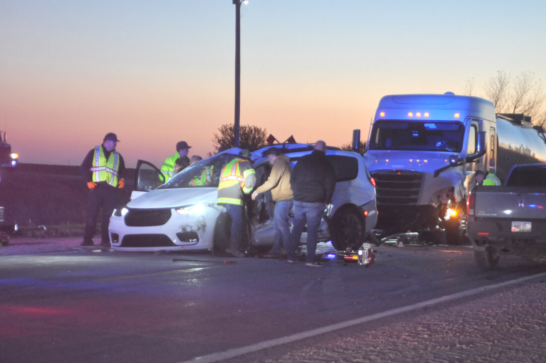 Morenz said the van was northbound on Baxter Avenue, stopped at the intersection and then proceeded into the path of the semi, which was eastbound on Webster County Road D36. He said the semi hit the van and shoved it into the pickup truck, which was stopped in the westbound lane of Webster County Road D36, waiting to turn.