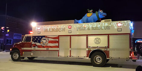 Manson’s second annual Lighted Christmas Parade makes its way down Main Street Saturday night in Manson, featuring a decked out Manson Fire & Rescue truck.