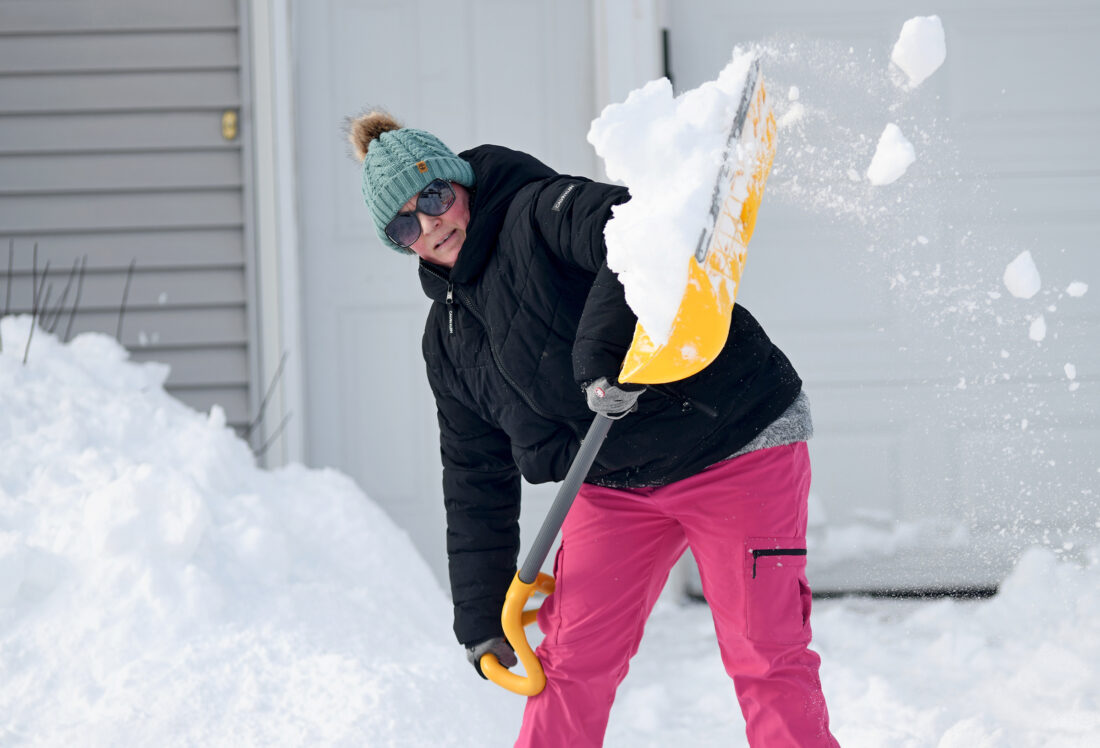 Annie Wolfe, of Fort Dodge, shovels her sidewalk on Sunday in Fort Dodge.