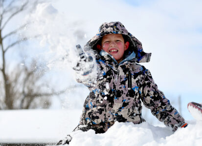 Kendryk Rasch, 8, of Fort Dodge, isn’t bothered by the snow as he tosses snowballs on Sunday in Fort Dodge after a weekend storm dumped several inches on the area.