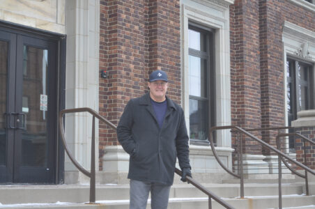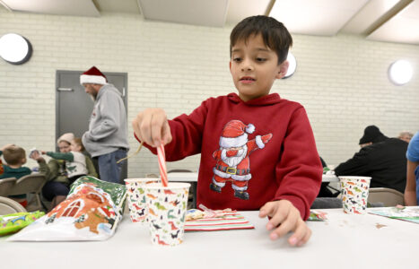 Thiago Ronda Deras, 7, of Duncombe, stirs his hot chocolate with a candy cane during the American Legion’s Christmas party on Friday in Duncombe.