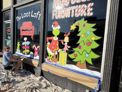 The Dr. Seuss Grinch-themed windows at The Loot Loft are one of Olson’s favorites because of her and her kids’ love of the movie.