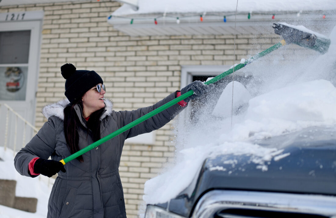 Ericka Slama, of Fort Dodge, cleans off her truck’s hood Nov. 30 after the Thanksgiving weekend snow that hit the Fort Dodge area.