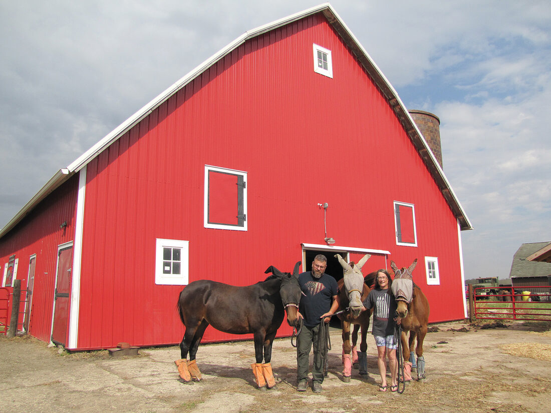 Corey and Richenda Cripe have converted their Webster County barn into a comfortable home for their three mules.