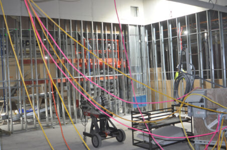 Cables dangle from the ceiling and walls of what will be Operating Room 1 in the new surgical center at UnityPoint Health — Trinity Regional Medical Center.