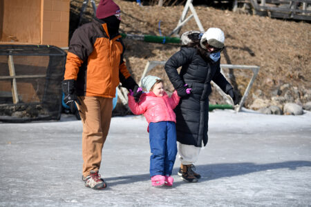 Ryan Flug, Pippa Flug, 4, and Taren Flug, all of Rockwell City, skate around the lake on Saturday during TWINterfest at Twin Lakes.