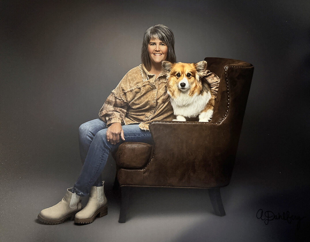 Toni Deal and her corgi, Tedwin, pose together. Tedwin works as a therapy dog for Unity Point Health — Trinity Regional Medical Center, UnityPoint Hospice, Van Diest Medical Center and Humboldt Memorial Community Hospital.