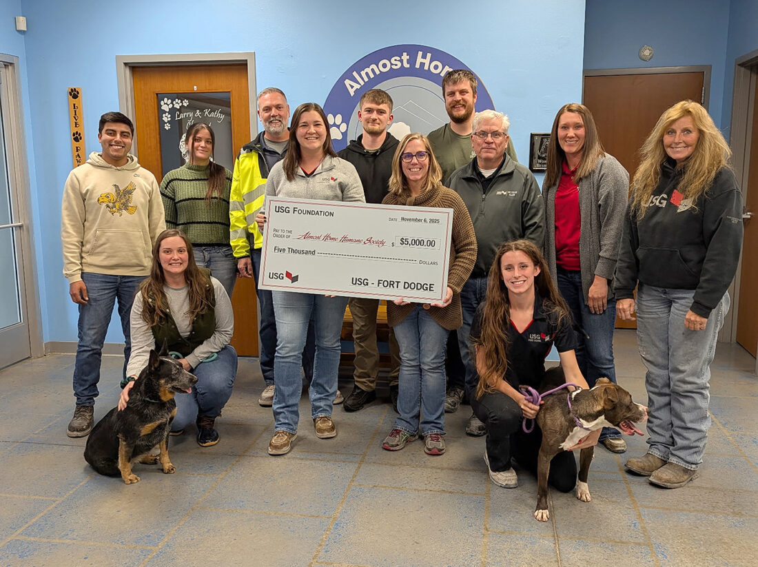 “USG is proud to support the Almost Home Humane Society and the vital work they do for Iowa animals and families here in Fort Dodge,” said USG Fort Dodge Plant Manager Ashley Little. “This contribution reflects our ongoing commitment to stand alongside our community members who make a meaningful difference every day. We encourage anyone looking for a new furry friend to explore this local resource.”