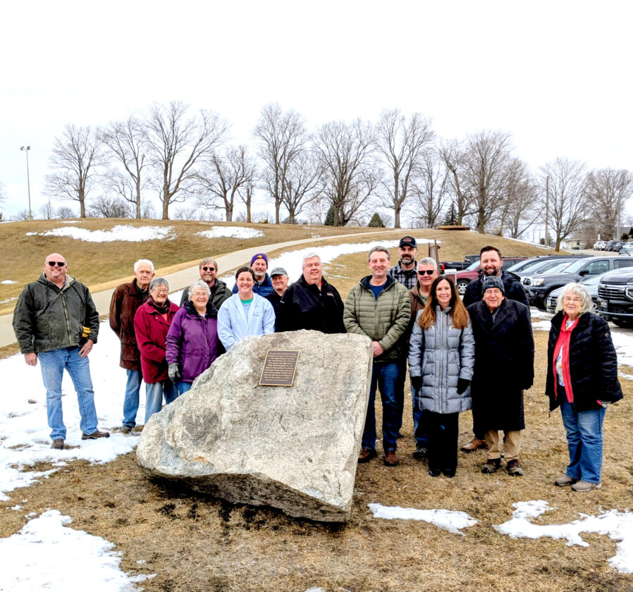 A number of local firms cooperated in planning and placing the memorial. The boulder was donated by Peterson Construction; a bronze plaque was ordered through Boman Funeral Home, and paid for by Van Diest Medical Center. Brian Stroner coordinated the project on behalf of the City of Webster City.