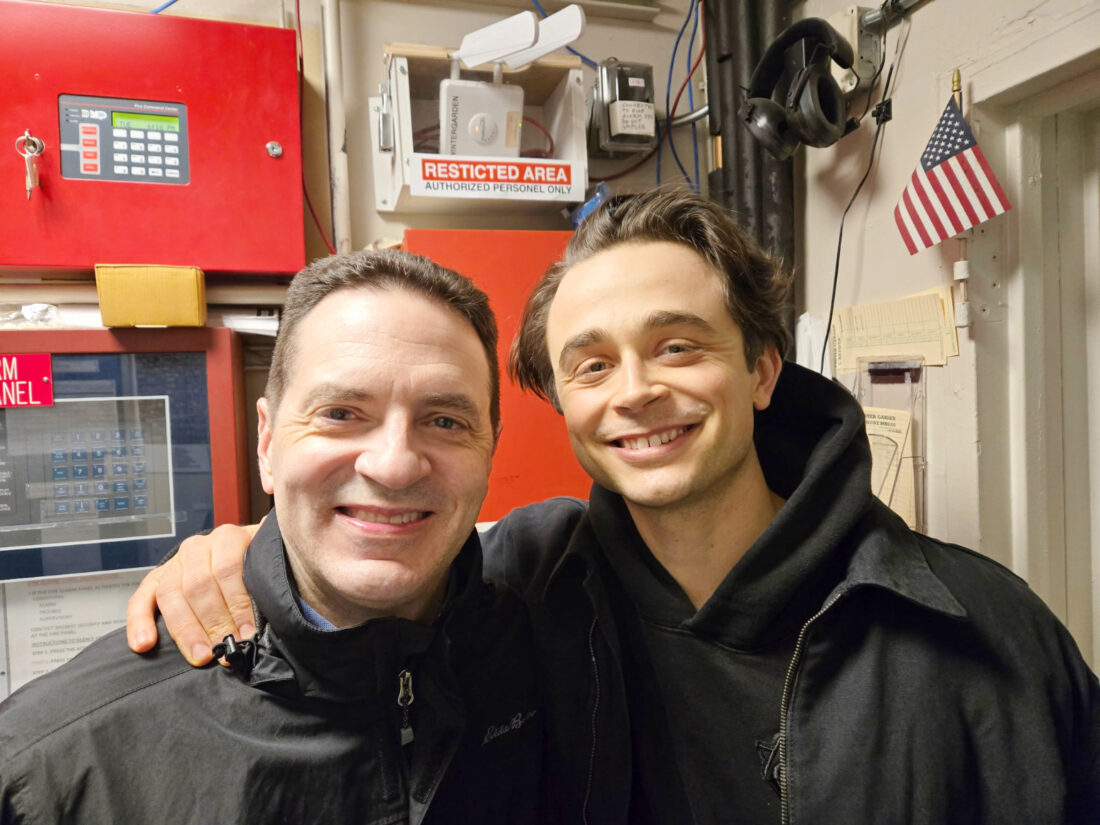 Ben Ahlers, a 2015 Fort Dodge Senior High graduate, with his father, Paul, after the performance of “Death of a Salesman” at the Winter Garden Theatre on Broadway. Ben plays Happy Loman in the iconic Arthur Miller play.