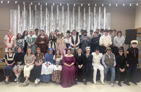 The St. Edmond Catholic High School junior class presented its first “Living Wax Museum” Monday at the Fort Museum and Frontier Village. The event was the brainchild of Lizzy Tiernan, a St. Edmond junior, in the center front row in the magenta dress.