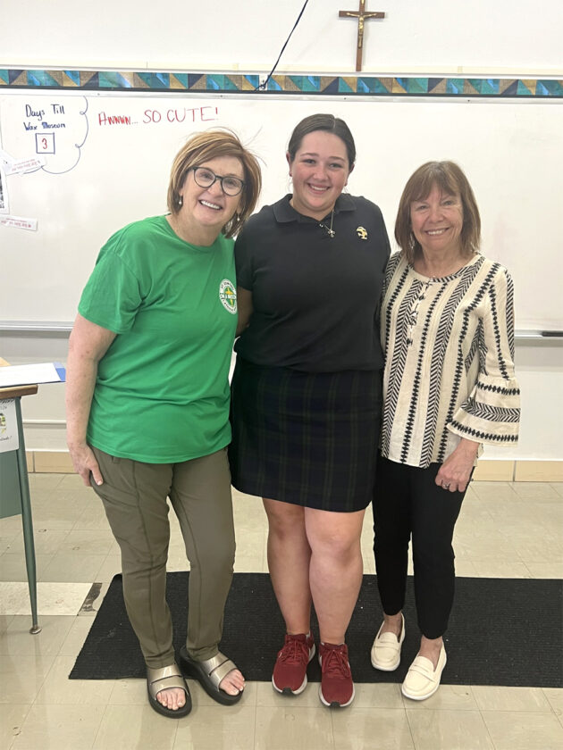 -Messenger photo by David Drissel Lizzy tiernan, center, is pictured with St. Edmond High School English teachers, Joan Shannon, left, and Nancy Gabriel.