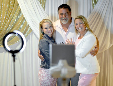 From left, Krysty Murray, Justin Wolfe and Annie Wolfe pose for a selfie during the Community Health Center’s fundraiser and celebration Saturday night at the Laramar Ballroom.