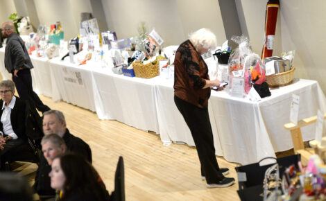 Dr. Janet Secor uses her phone to secure a bid on the silent auction Saturday night during the Community Health Center’s 20th anniversary celebration and fundraiser at the Laramar Ballroom in Fort Dodge.