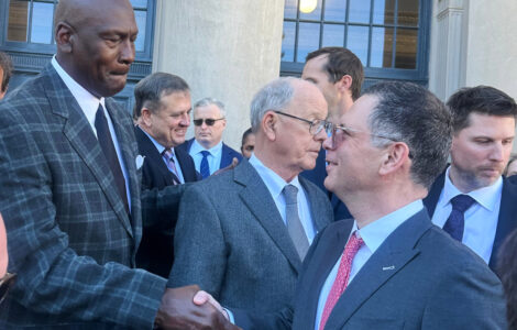 CHARLOTTE, N.C. (AP) — Michael Jordan and NASCAR chairman Jim France stood side-by-side on the steps of a federal courthouse as if they were old friends following a stunning settlement Thursday of a bruising antitrust case in which the Basketball Hall ...