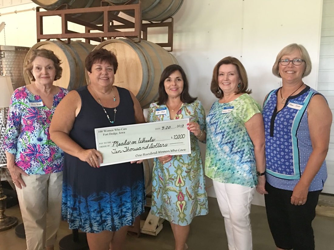 - 100+ Women Who Care presented a check for $10,000 to Meals on Wheels. Pictured from left are Jane Gibb, Barb Michaels, Deb Johnson, Carolyn Kent and Tammy Secor.