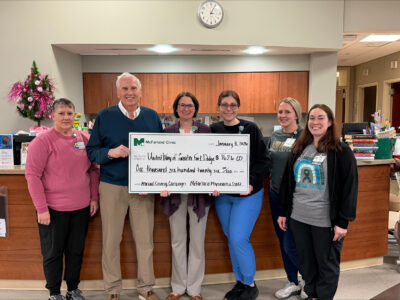 Physicians and staff at McFarland Clinic in Fort Dodge presented a check for $1,626 to the United Way of Greater Fort Dodge. The donation was raised by physicians and staff through the clinic’s Annual Giving Campaign. Pictured from left are Lisa Werning, Randy Kuhlman of United Way of Greater Fort Dodge, Dr. Sarah Tofilon, Megan McFarland, Krystal Prince and Kaitlyn Porter.