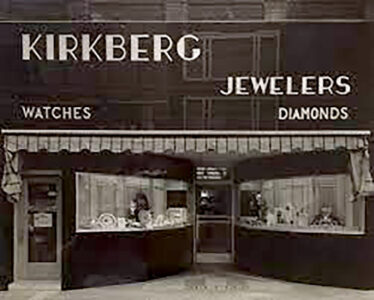 The Kirkberg name appeared on the Fort Dodge shopping scene when H.C. Kirkberg purchased in 1927 a well-established store at 812 Central from Mack Hurlbut that had opened its doors in 1888. H.C. came to Fort Dodge to work for Hurlburt. It was renamed Kirkberg Jewelers and was a downtown institution until it closed on June 1, 2000. (In 1968, it moved next door to 814 Central and in 1984, the store moved to 615 Central, where it remained for its final 16 years.)