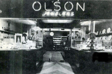 Olson Jewelry was founded in 1922 by Oscar Olson, a watchmaker, and was located at 903 Central. It was rebuilt next door in 1982 after two fires in an adjoining building. Future owners Lloyd Hambleton and Karl Johnson began working there part-time in the early 1940s while still in high school. Their wages were $5 a week.