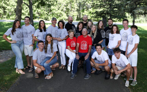 Joan and Tom Tibbitts, center, are shown surrounded by their family.