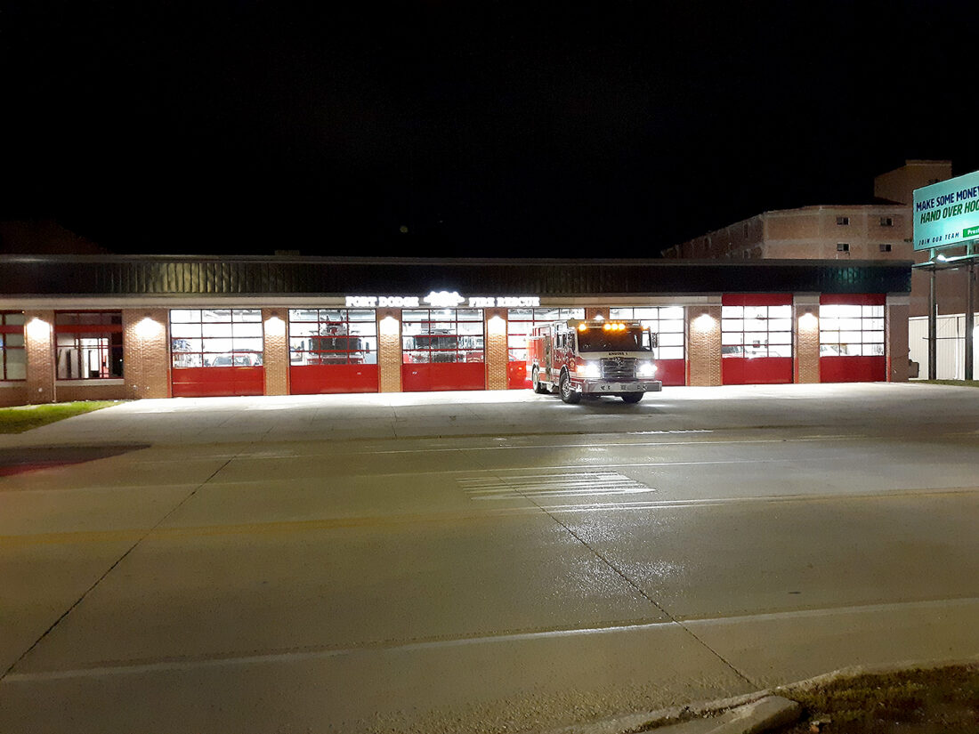 The front of the Fort Dodge firehouse at Central Avenue and 15th Street looks different. Anyone going by can now catch a glimpse of fire trucks and ambulances parked behind big overhead doors that have lots of windows built into them.