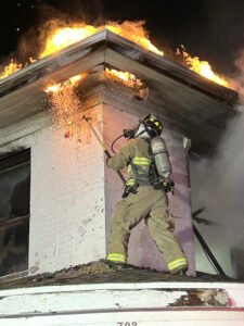 A firefighter works at the scene of a house fire at 702 N. 16th St. on Nov. 16. Fort Dodge firefighters responded to more than the usual number of structure fires this past year.