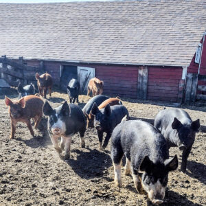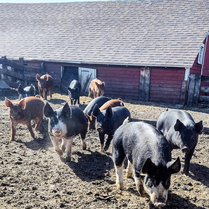 The Robertsons raise a heritage breed of Berkshire boars bred with crossbred sows, including the Berkshire, Duroc, and Gloucester Old Spot breeds. The combination produces pork that is moist, flavorful, and known for its marbling, according to the website.