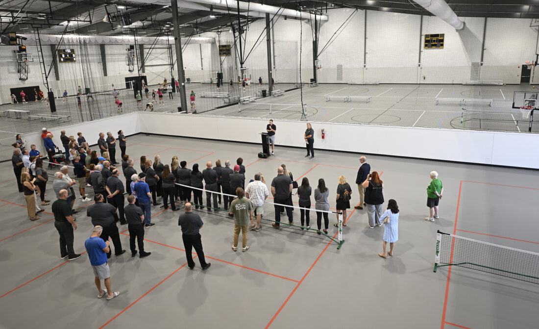 The Pavilion Sports Complex, located on the west side of the property that was once Crossroads Mall, includes space for basketball, volleyball, and pickleball. It also includes batting cages and a walking track.