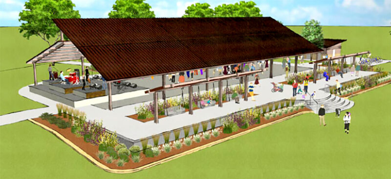 The large shelter, capable of seating 200 people, will be located at the west end of Central Avenue just south of the Matt Cosgrove River’s Edge Discovery ...