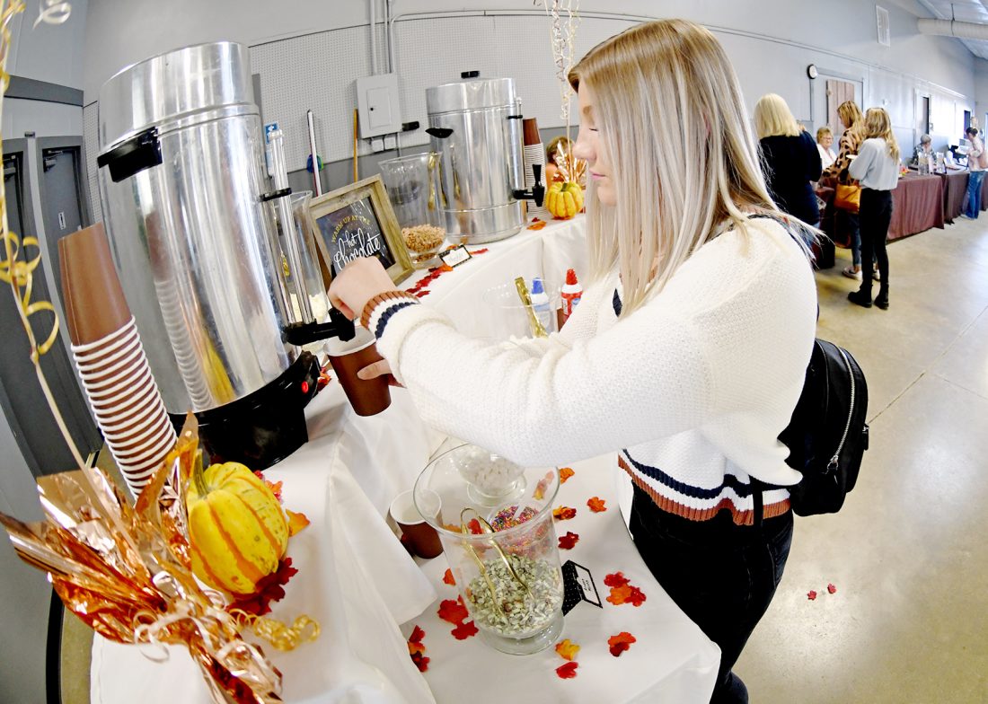 Avery Thompson, of Fort Dodge, gets a drink from the hot chocolate bar during the eighth annual “It’s a Chocolate Thing” event at the Webster County Fairgrounds in 2021.