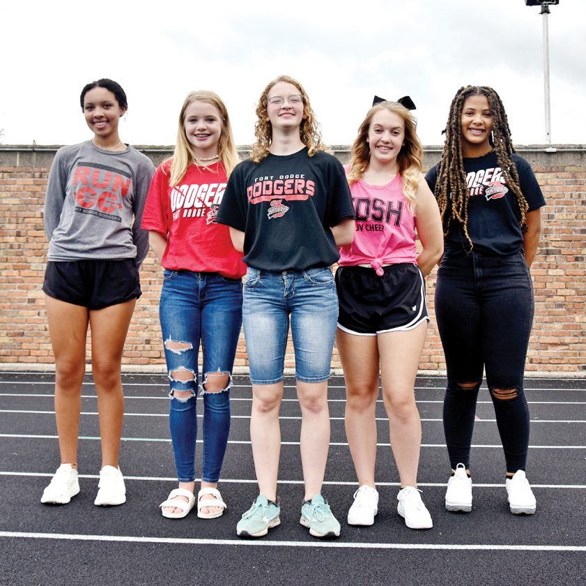 - Messenger photo by Britt Kudla: Fort Dodge girls cross country letterwinners are (left to right): Lexi Fellers, Morgan Bodholdt, Dari Cook, Briley Frank and Aja Jallow.