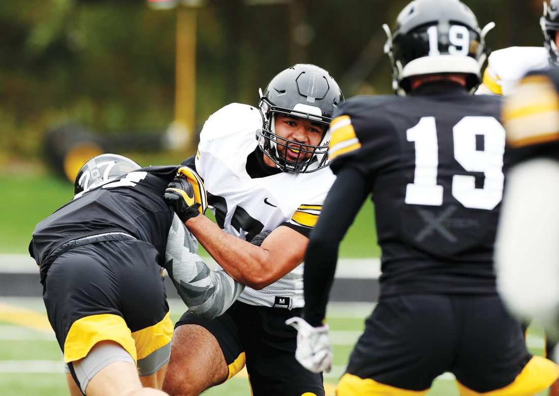 —Photo courtesy Brian Ray Southeast Valley graduate Kyler Fisher participates during spring practice in Iowa City. Fisher, who is listed as the back up at weakside linebacker for the Hawkeyes, talked with The Messenger earlier this summer about his time at the University of Iowa.
