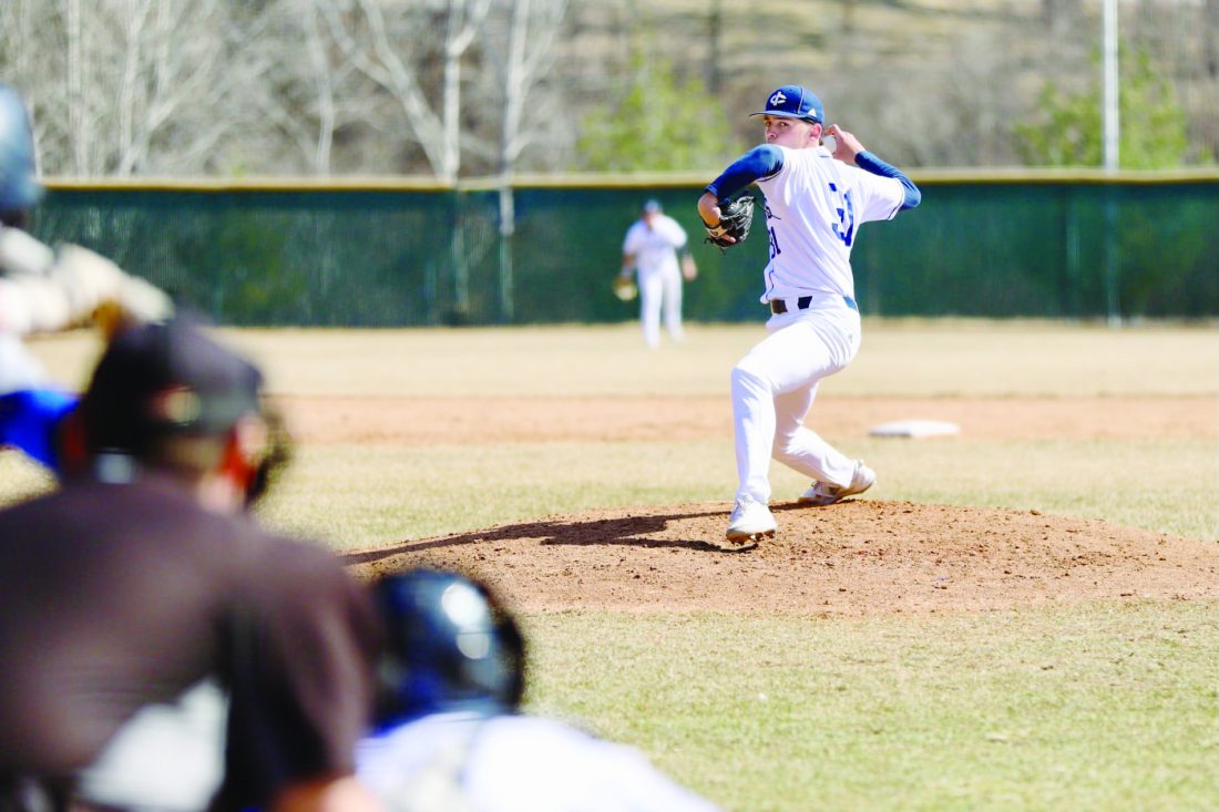Photo by Paul DeCoursey: Former Webster City all-stater Tyler Olson pitches earlier this week for Iowa Central at Ed Barbour Field.
