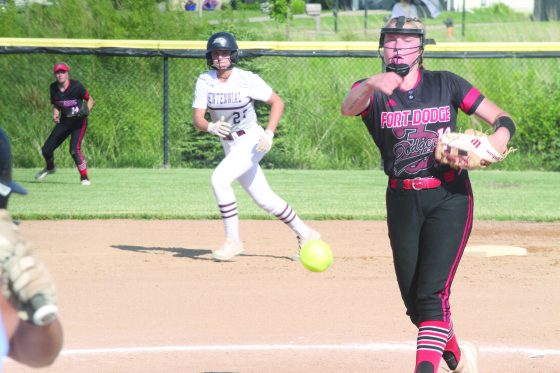 The senior twirled a two-hitter in No. 4 Fort Dodge’s opening 5-1 victory against the sixth-rated Jaguars (14-9 overall). Freshman Lucy Porter (9-2) picked up the victory as Fort Dodge’s bats stayed hot in a 10-1 nightcap rout.