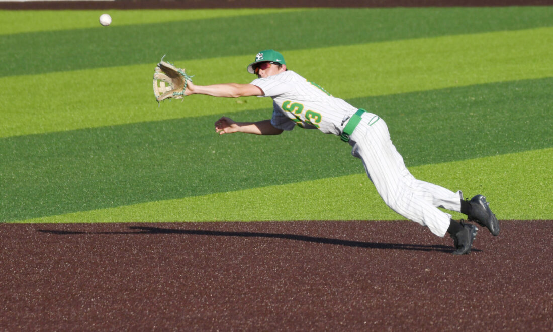 Messenger photo by Britt Kudla: Hayden Derrig of St. Edmond makes a play earlier this season at Rogers Park. Derrig was a unanimous first team all-North Central Conference pick.