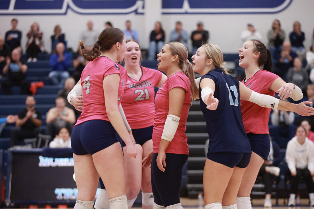 —Photos courtesy of Iowa Central Iowa Central players celebrate during their match against Western Iowa Tech on Wednesday inside Hodges Fieldhouse.