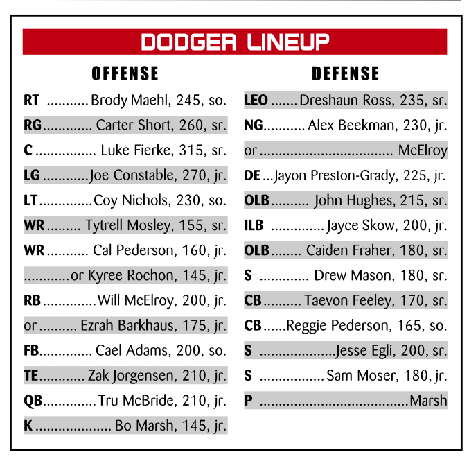 The Dodgers will likely be without first team all-stater Noah Daniel, who injured his knee against the Tigers last Friday in the first half and was unable to return. The team’s top receiver, Dalton Eckley, had surgery on his shoulder this week and is out for the season. Eckley also left in the first half at Spencer.