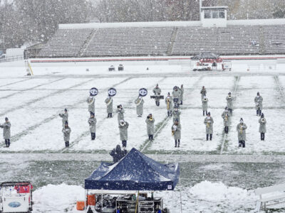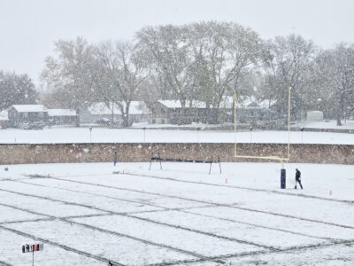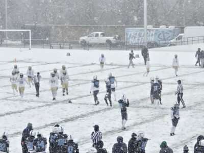 The snow was flying throughout Iowa Central’s football game against Independence on Saturday afternoon inside Dodger Stadium. Over three inches of snow fell locally as temperatures hovered right around the freezing mark. Yard lines were shoveled off and cleared for players in five-yard increments. The fans who braved the weather saw the 12th-ranked Tritons blank the Pirates, 30-0.