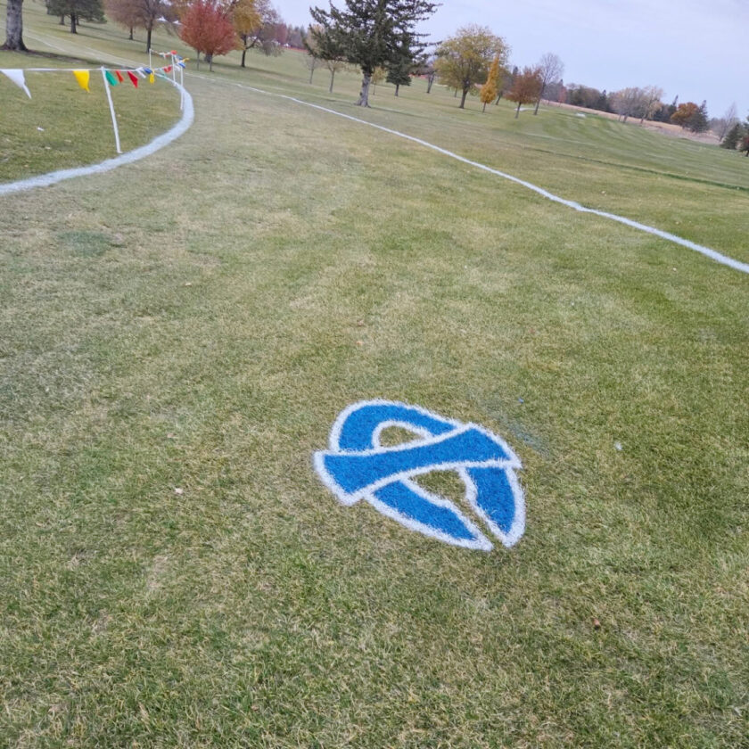 Submitted photo: The Iowa Central logo is stenciled into the race area at Lakeside Golf Course inside Kennedy Park ahead of this weekend’s NJCAA national championships.