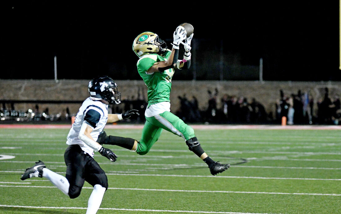 -Messenger photo by Britt Kudla Jakob Koopman of St. Edmond makes the catch for a first down against GTRA