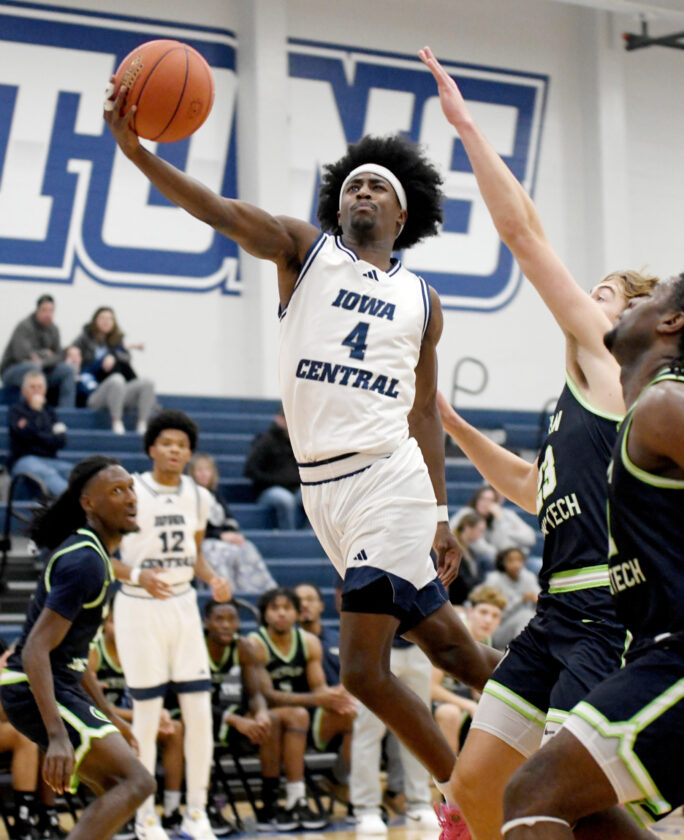 Messenger photo by Britt Kudla: Iowa Central's CJ Mitchell reached double figures on Wednesday against Central-Columbus inside Hodges Fieldhouse.