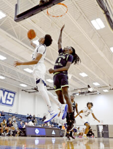 Messenger photo by Britt Kudla: Jalen Wynter of Iowa Central drives and scores against Western Iowa Tech inside Hodges Fieldhouse.