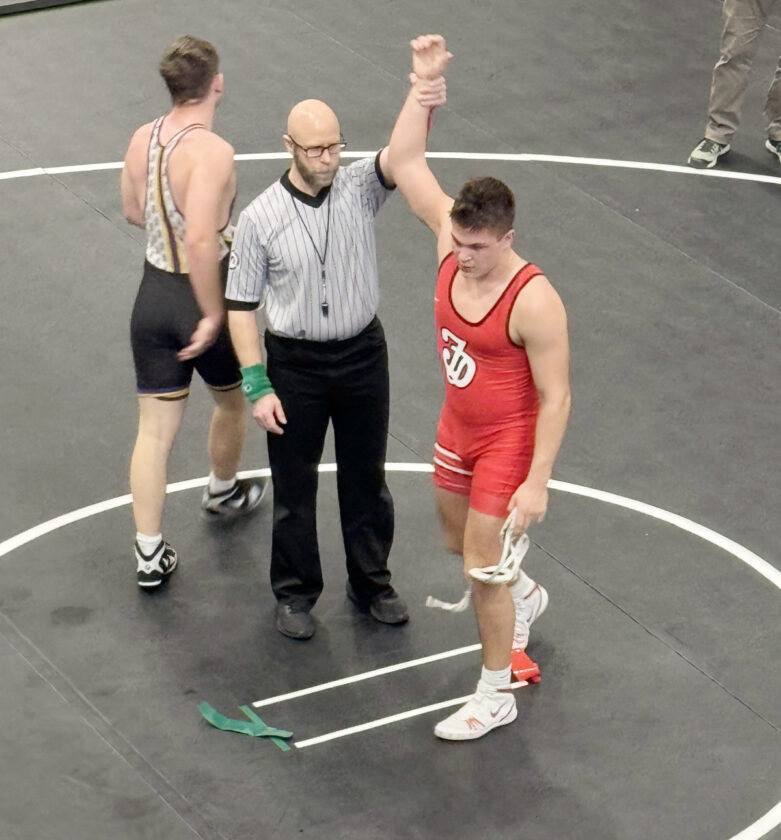 Submitted photo: Fort Dodge senior Jesse Egli won his 100th career match on Saturday in Ames.