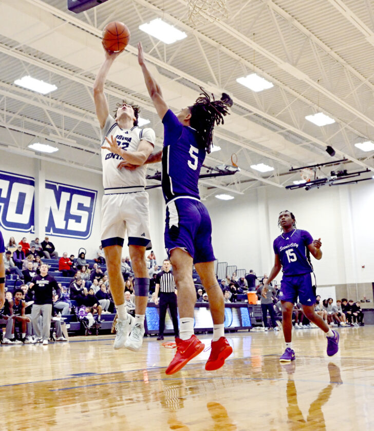 -Messenger photo by Britt Kudla Aleix Sempere of Iowa Central shoots around Ellsworth on Wednesday inside Hodges fieldhouse