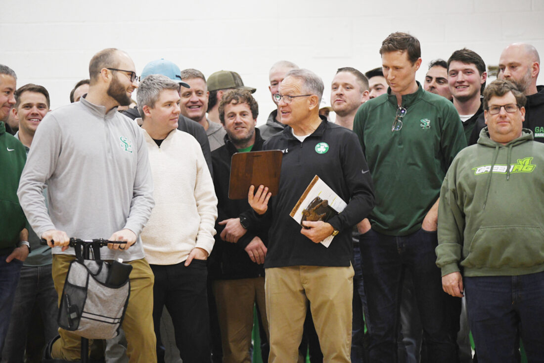 Before the game started, St. Edmond players past and present honored Kochendorfer with a ceremony commemorating his career. Kochendorfer has announced plans to retire after the season.