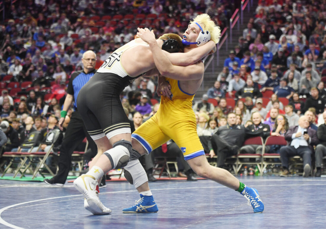 Inside the Casey’s Center, he lost in the semifinals and then suffered an 8-5 loss to Mason Avila (38-10) of Decorah in the consolation semifinals. He beat Colt Boyles (44-6) of Burlington Note Dame, 4-0 for fifth. He had a fall and a decision in his first two matches.