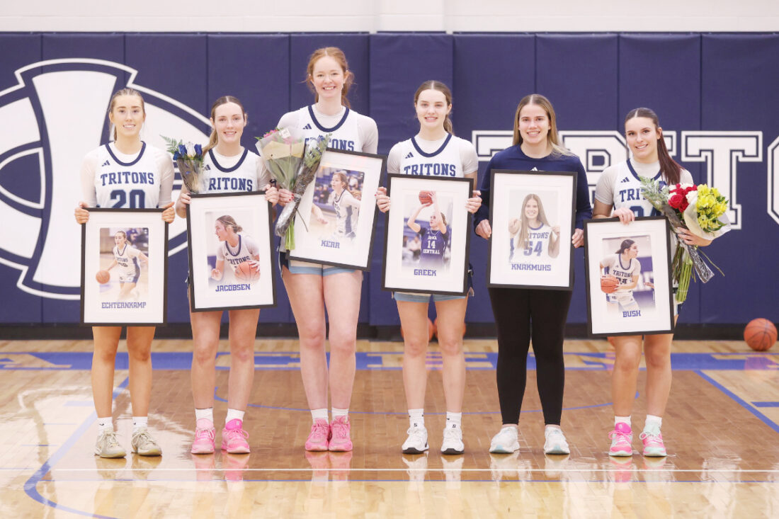 Photo by Iowa Central Athletics: The Iowa Central women honored their sophomores (left to right) at home on Saturday: Amelia Echternkamp, Ashlin Jacobsen, Ashleigh Kerr, Sharon Greek, Kylie Knakmuhs and MacKenna Bush.